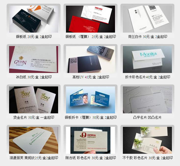 300克銅版紙彩色名片印刷價格表